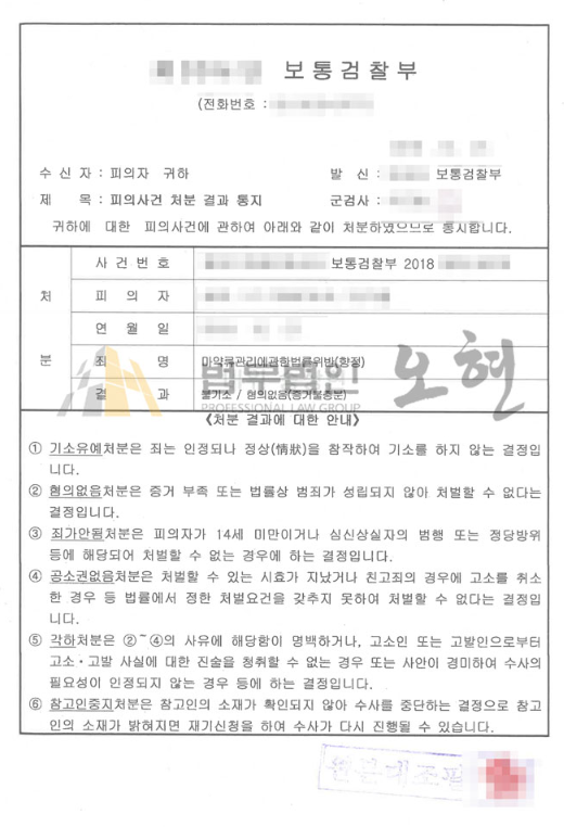 본 의뢰인은 의뢰인 A씨의 마약 투약혐의에 대하여 명확한 증거가 없다는 점을 강조하여 변론을 진행하였으며, 단순히 SNS 메신저 상 대화와 같은 불명확한 증거만으로 의뢰인을 기소할 수 없다는 점을 수사기관에 강력히 주장하였습니다.