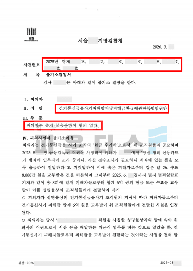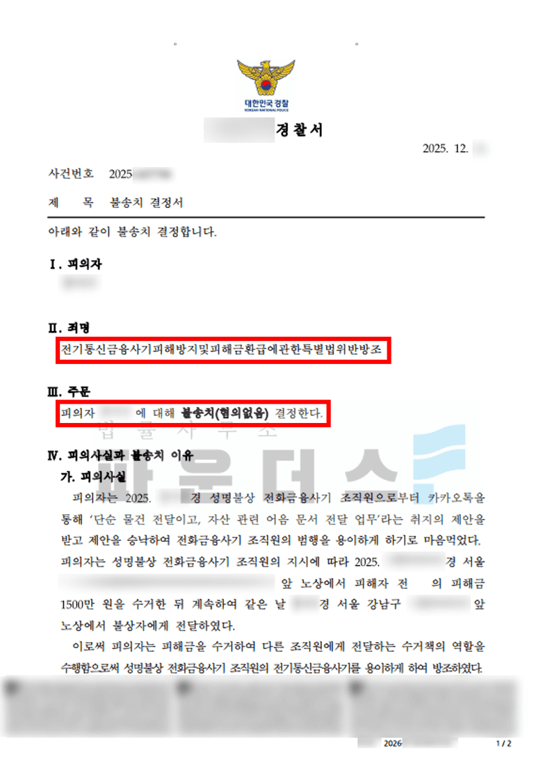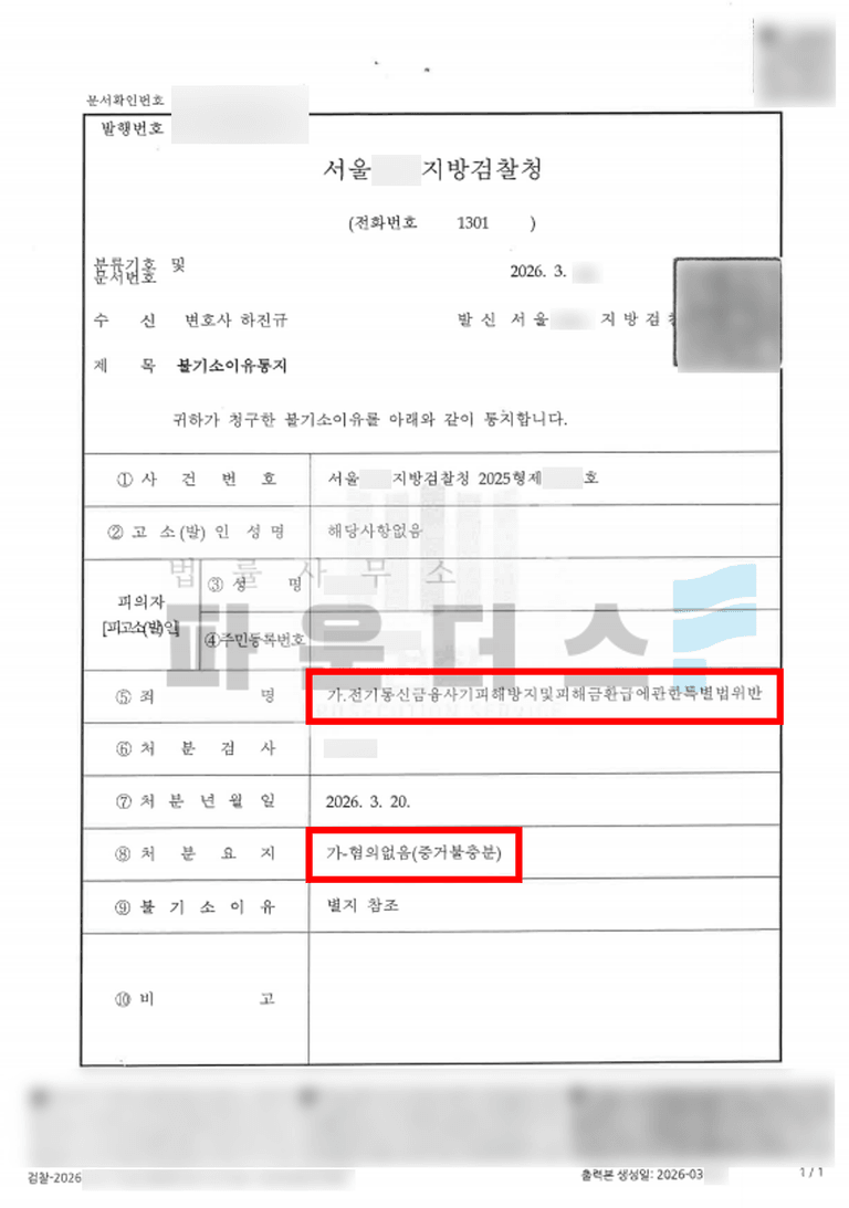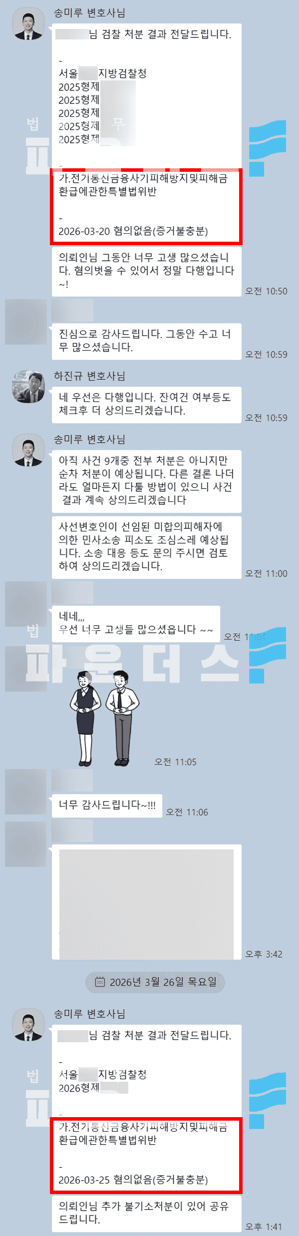 그러나 이 과정이 실제로는 보이스피싱 조직의 피해금 수거 행위였고 의뢰인은 전기통신금융사기 피해 방지 및 피해금 환급에 관한 특별법 위반 혐의로 수사를 받게 되었습니다.