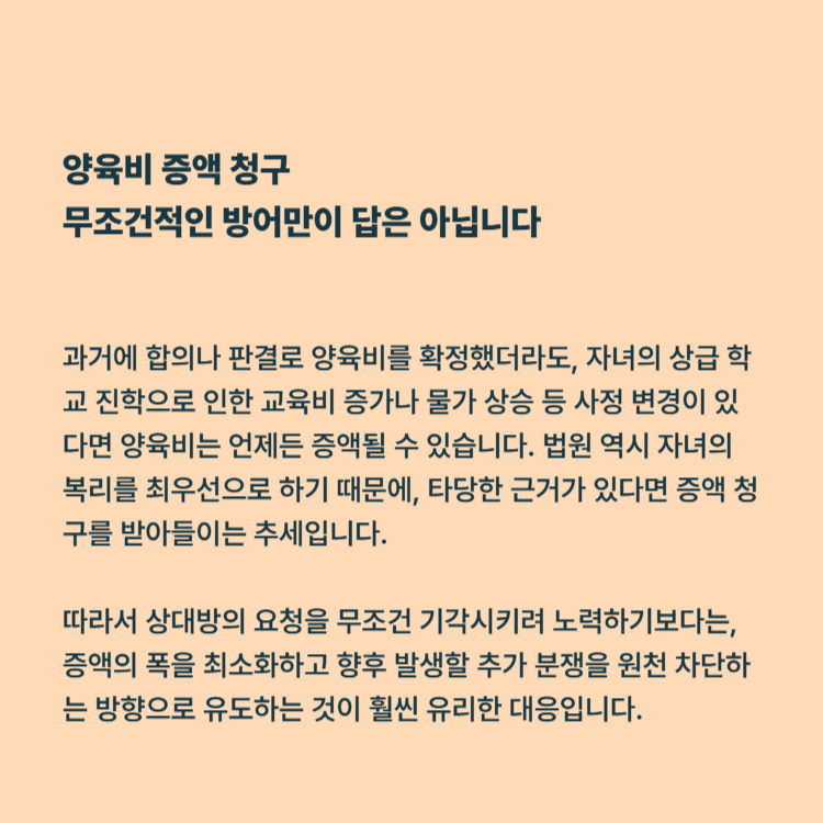 양육비 증액 청구, 무조건적인 방어만이 답은 아닙니다