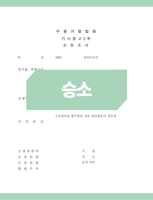 조정 과정을 통해 B씨는 미래의 교육비 부담을 덜 수 있다는 확신을 얻어 단계별 산정에 동의했습니다. 결과적으로 A씨는 당장의 양육비 부담을 줄이는 동시에, 그토록 바라던 자녀와의 충분한 시간을 확보하며 성공적으로 사건을 마무리했습니다.
