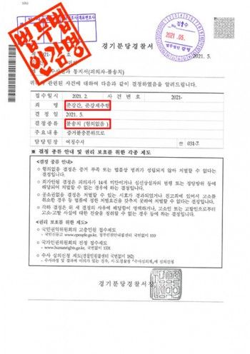 ○ 증거불충분하여 불송치(혐의 없음) 결정.