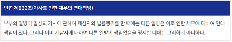 따라서 부부라도 일방의 채무에 대하여 배우자가 당연히 공동으로, 연대하여 책임을 부담하는 것은 아닙니다.