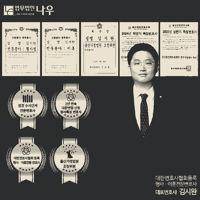 안녕하세요, 울산형사전문변호사 울산이혼전문변호사 법무법인 나우 김시완 대표변호사입니다.