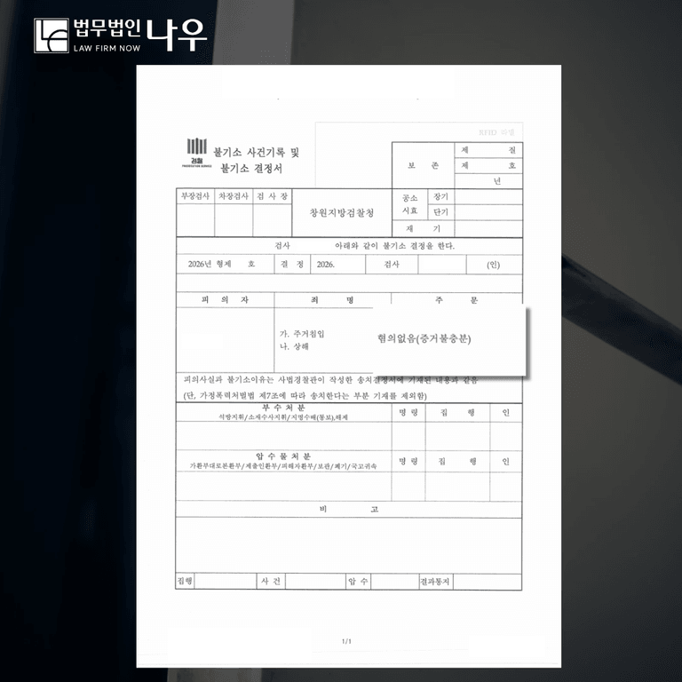 검찰 또한 사법경찰관의 혐의없음 불송치 의견이 합당하다고 판단하여 혐의없음 불기소 결정을 하였습니다.
