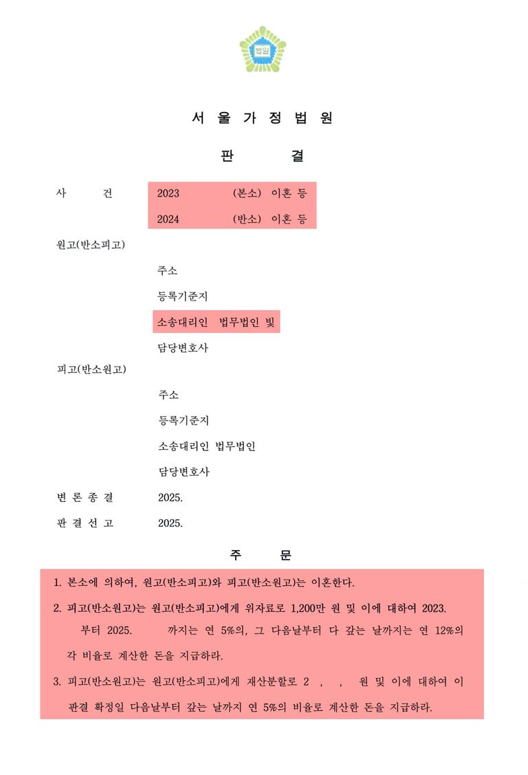 위자료 1,200만원 전액 승소 판결을 이끌어냈는지 그 성공 사례를 소개하겠습니다.