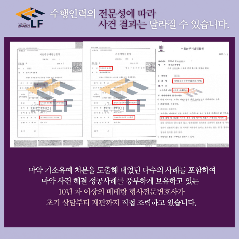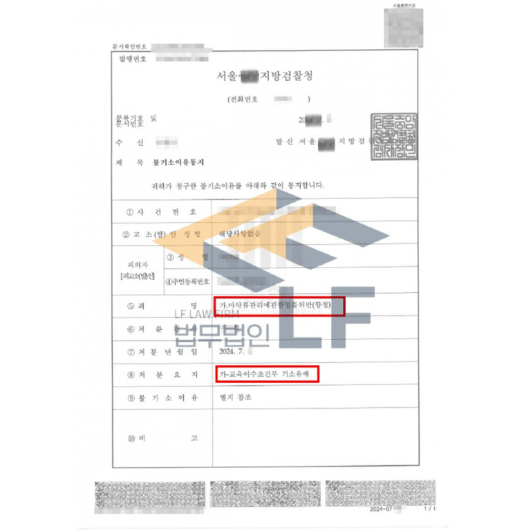 의뢰인은 검찰로부터 마약기소유예 처분을 받을 수 있었습니다.