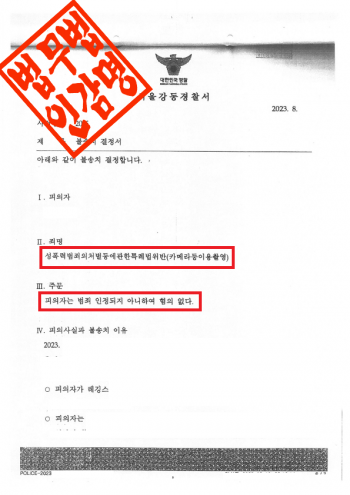 ○ 범죄 인정되지 아니하여 불송치(혐의없음) 결정임.