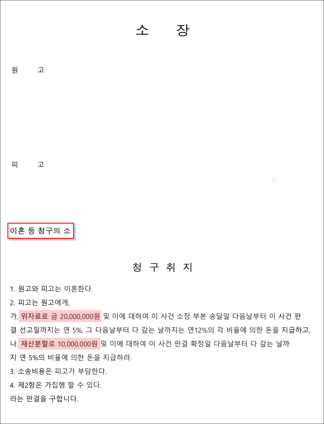 특히 소장에는 원고에게 유리한 사실관계만이 강조되어 있었고, 혼인 파탄의 경위에 관한 다양한 사정은 충분히 반영되지 않은 상태였습니다.