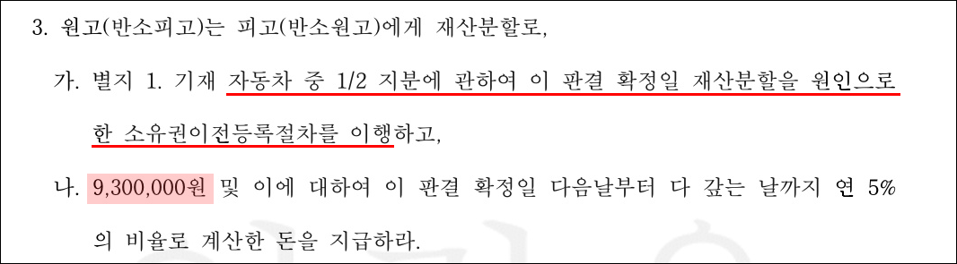 그 결과, 의뢰인은 원고로부터 자동차 1/2 지분과 현금 930만 원을 지급받는 ‘역전 정산’의 결과를 이끌어낼 수 있었습니다.