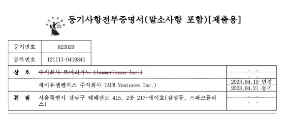 [실제 법인등기부에 필수적으로 기재되는 본점 주소]