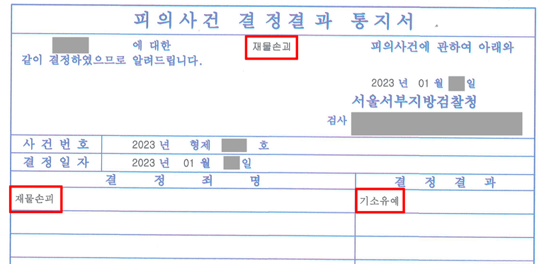 수사기관은 피의자의 행위가 타인의 재산에 손해를 가한 것으로 판단하여 형사처벌 여부를 검토하였고, 사안의 특성상 벌금형 등 전과가 남을 수 있는 처분 가능성이 존재하는 상황이었습니다.