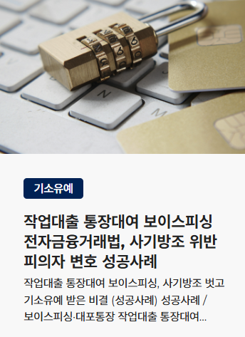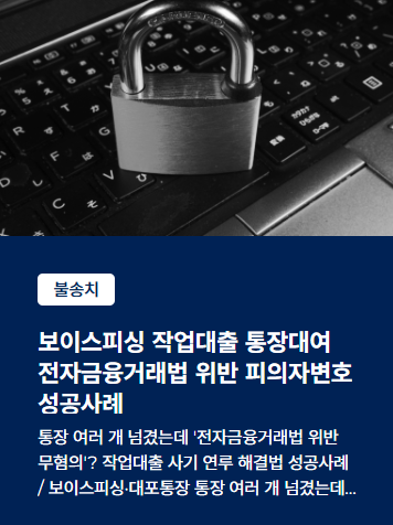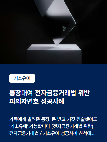 ![[보이스피싱]전금법 위반 통장 대여, 경찰단계 기소유예받은사례](/_next/image?url=https%3A%2F%2Fd2ai3ajp99ywjy.cloudfront.net%2Fuploads%2Ftitleimage%2Foriginal%2F5c64e15789f37c09d00920c8-original.jpg&w=3840&q=75)