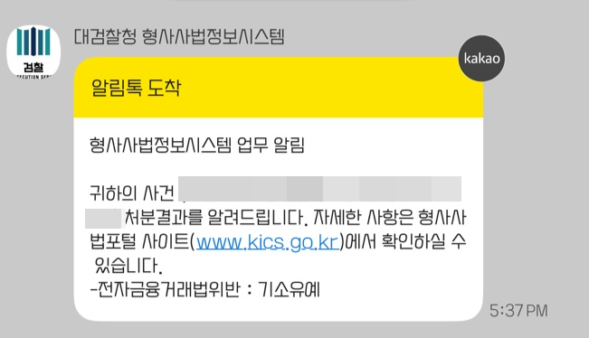3. 최종 결과 - 통장 대여 전자금융거래법 위반 기소유예
