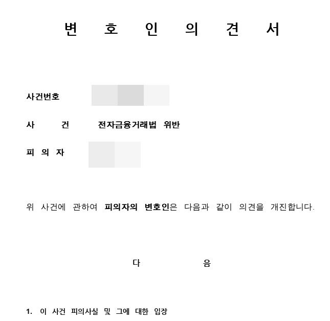 저희가 직접 작성하고 제출한 변호인 의견서 중 일부
