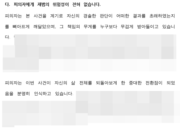 의뢰인께서는 사건 초기 경찰 연락을 받고 난 뒤, 구속이나 실형으로 이어지는 것은 아닌지에 대한 불안감 때문에 밤잠을 제대로 이루지 못하셨던 상황이었습니다. 하지만 사건이 기소유예로 마무리된 이후에는, 그동안의 긴장이 풀리며 진심으로 감사의 뜻을 전해주셨고 다시 일상으로 돌아갈 수 있었다는 점에 큰 안도감을 표현하셨습니다.