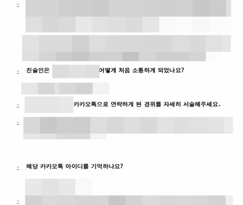 저희가 작성했던 자수서와 경찰조사 피드백 질답지