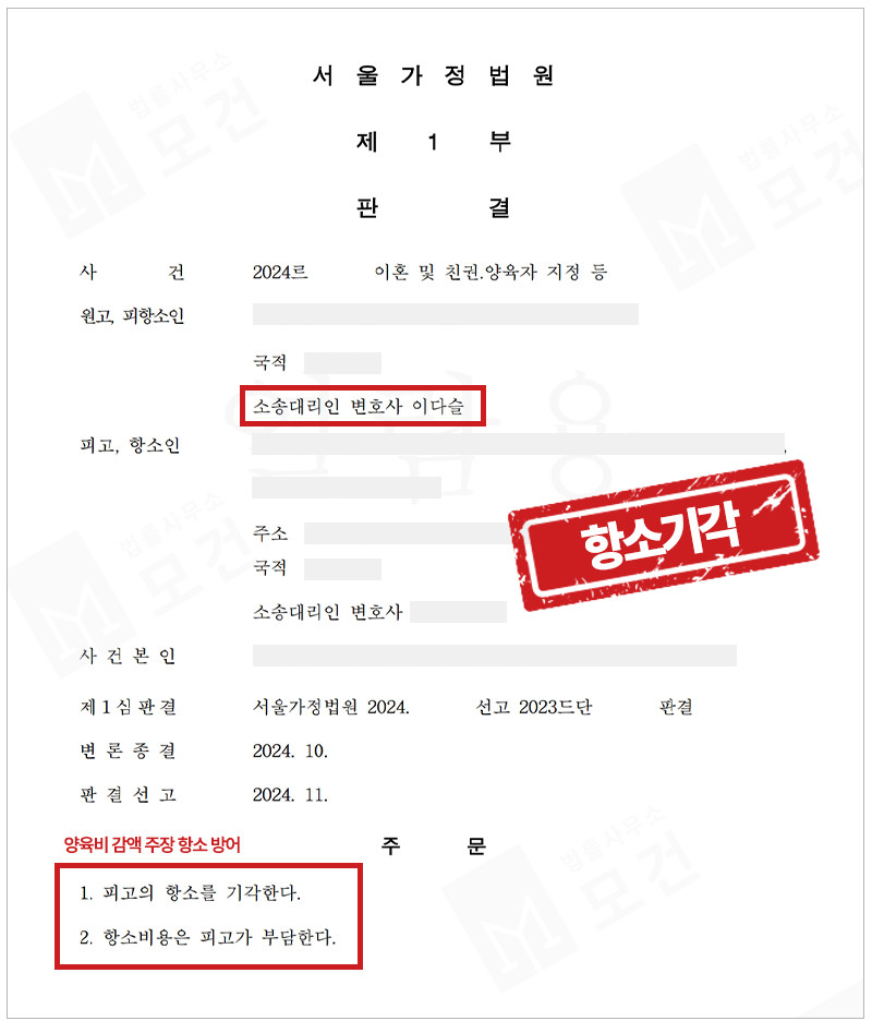 항소심 재판 역시 종로이혼전문변호사인 이다슬 변호사가 조력하였는데요.
