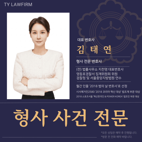 오랜 기간 형사 전문 변호사로 업무를 수행하며 유명 살인 사건까지 성공 사례를 만들어 내고 있는 태연법률사무소의 김태연 대표 변호사 님을 찾아주시기 바랍니다.