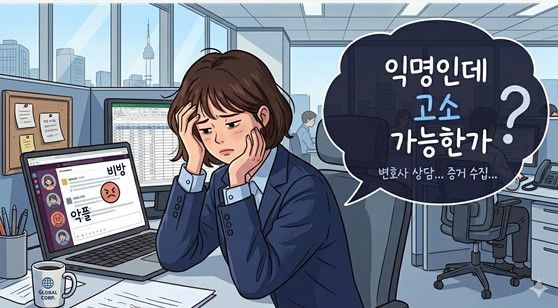 지인은 억울함과 분노를 느끼면서도, 글이 익명으로 작성된 탓에 대응이 어려울 것 같고, 괜히 일을 키워 조직 내 갈등을 만들고 싶지 않아 속앓이를 하고 있는 상황이었다.