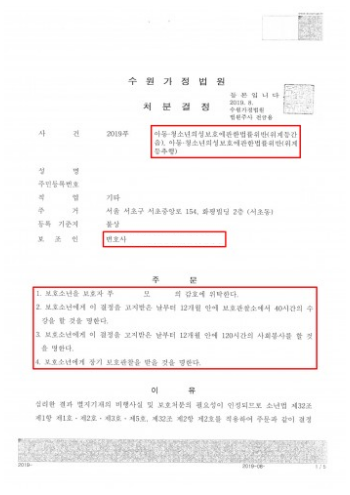 ○ 보호소년에게 이 결정을 고지받은 날부터 12개월 안에 120시간의 사회봉사를 할 것을 명한다.