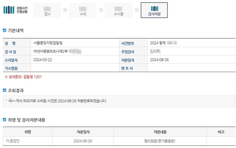 정말 오랬동안 끌어왔던 준강간 사건이었습니다. 드디어 마침내 검찰에서 무혐의를 받았습니다. 끈질기게 무혐의를 주장하며 '혐의없음'처분을 받게 되었습니다.
