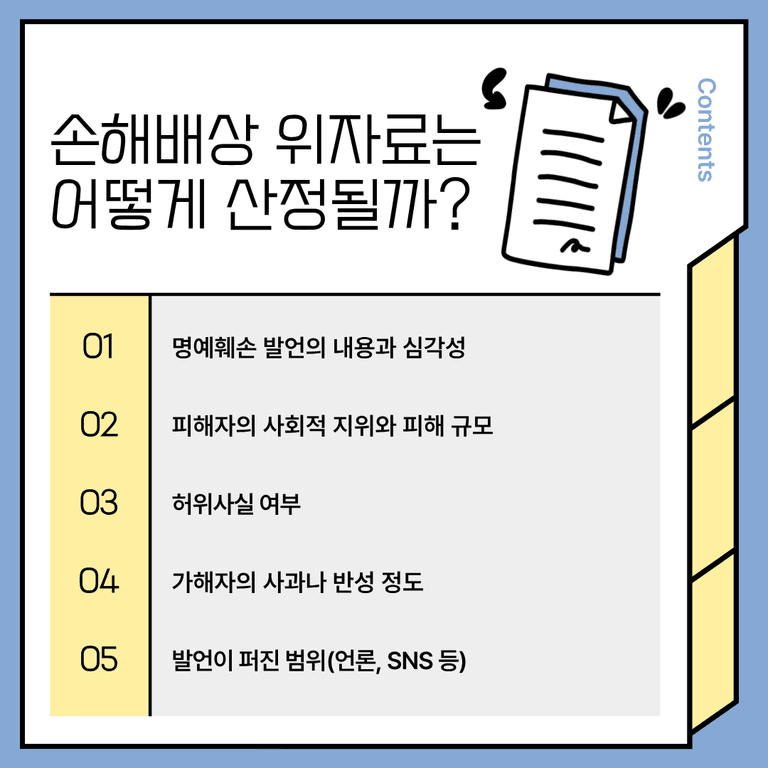 손해배상위자료 청구의 기준, 그리고 명예훼손소송 절차에 대해 살펴보겠습니다.
