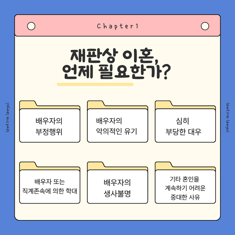 따라서 재판상 이혼은 단순한 감정의 문제가 아닌, 법적 판단과 증거가 필수적인 절차입니다.
