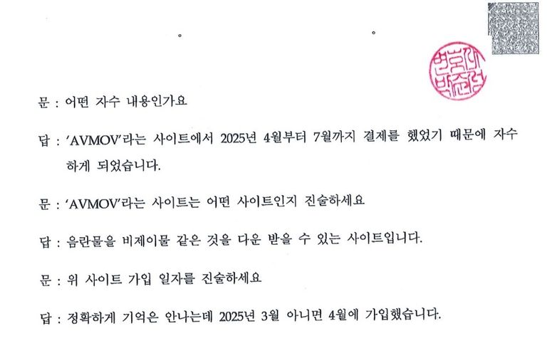 아래는 avmov 자수사건 피의자신문조서 중 일부입니다.