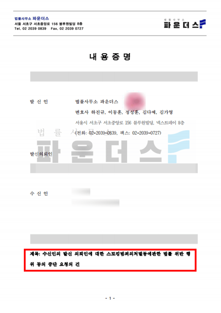 일반적으로 스토킹 사건에서 변호사 명의 내용증명이 발송되면 가해자는 태도가 누그러지며 수동적인 자세로 전환되는 경우가 많습니다.