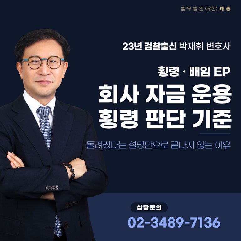회사 운영 과정에서는 법인 자금과 개인 자금의 경계가 흐려지는 상황이 생각보다 자주 발생합니다. 특히 대표이사, 임원, 재무 담당자처럼 회사 자금에 접근할 수 있는 위치에 있는 경우라면, 일시적으로 사용한 돈을 단순 정산 문제로 생각하는 경우도 적지 않습니다.