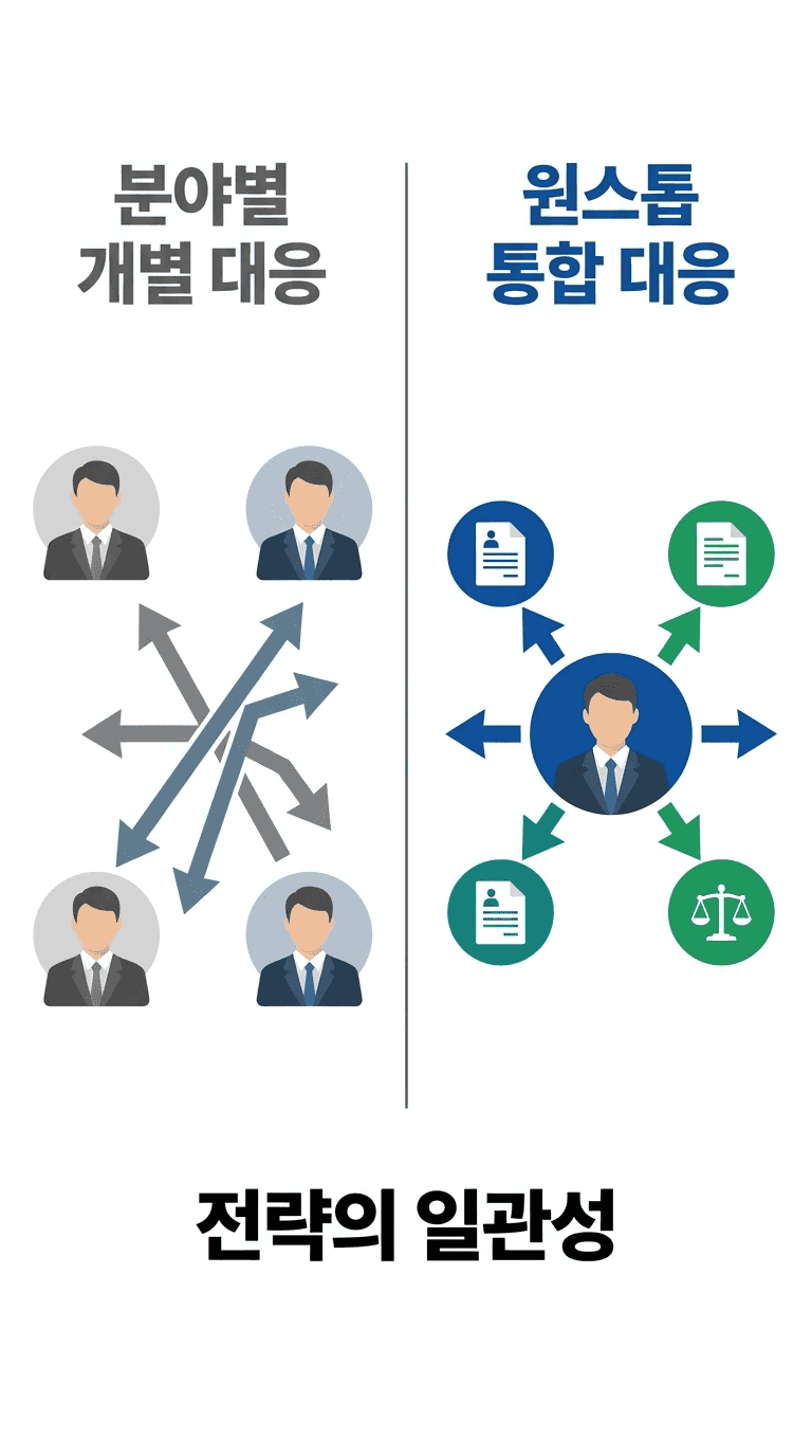 분야별로 따로 대응하면 한쪽의 주장이 다른 쪽에서 불리한 근거가 될 수 있고, 전략의 모순이 생기는 순간 전체가 무너질 위험이 있었습니다.