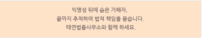오랜 기간 동안 수많은 성공 사례를 쌓고 있는 전문성과 자체적인 노하우로 유튜브 등 해외에 본사를 둔 SNS나 가계정으로 작성한 악플까지도 가해자를 특 정하여 고소를 진행하고 있습니다.