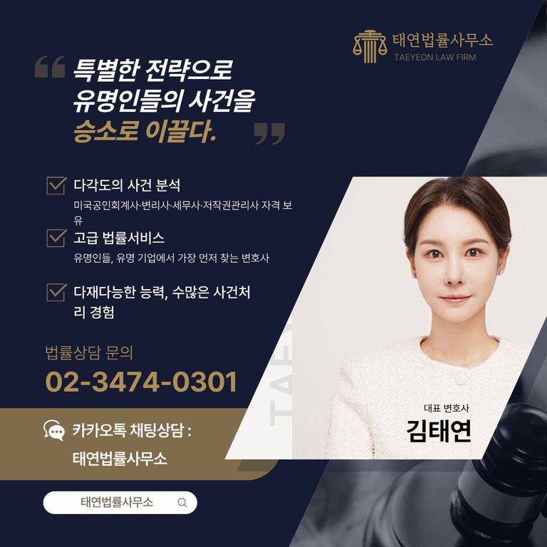 태연 법률사무소의 김태연 대표 변호사 님께서는 악플 피해 사건 고소를 전문적으로 진행하고 계시는 형사 전문 변호사로, '유명 사업가, 인기 유튜버, BJ, 아이돌, 가수, 배우 등 많은 연예인과 인플루언서, 개인 방송인' 등 많은 사업가와 유명인 분들을 고소 대리하여 악플러 처벌을 이끌어내고 있습니다.