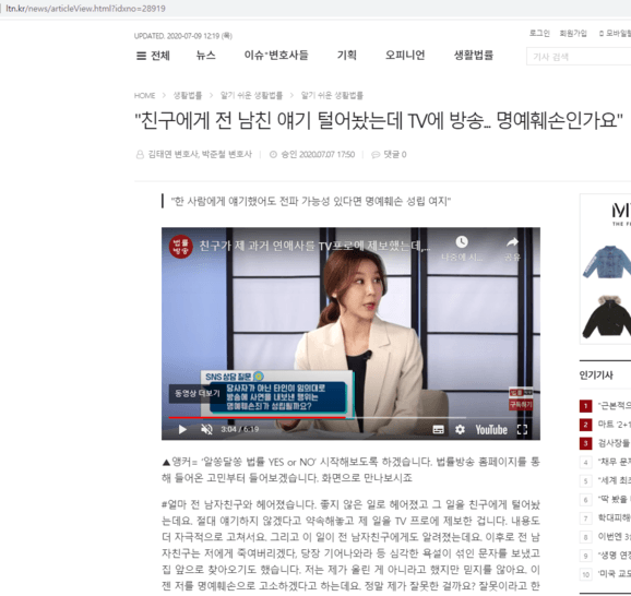 -남 아이돌 멤버 정보통신망법 위반(명예훼손) 고소 대리 성공사례 [SBS 등 다수 언론 보도]