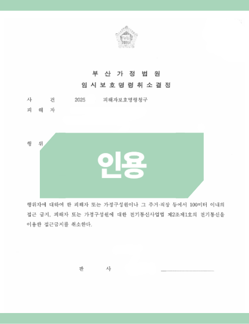 [성공 사례] 정서적 유대관계 입증으로 임시보호명령 '전격 취소'