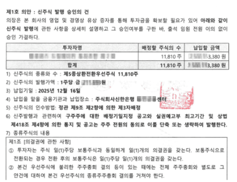 ✅ 종류주식(상환전환우선주_RCPS 등)을 통한 유상증자 결의