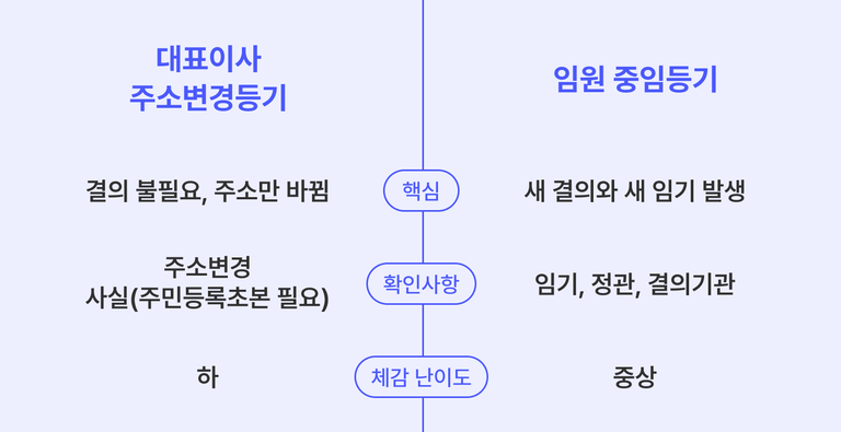 4-1. 대표이사 주소변경등기와 임원 중임등기 차이점