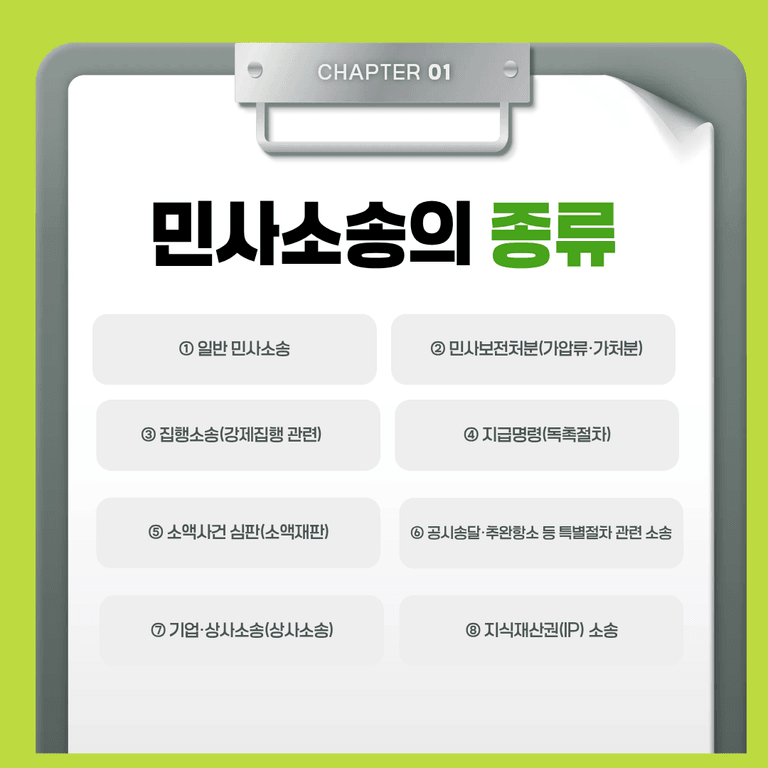 공사대금, 의료소송 등 다양한 분야가 여기에 포함됩니다.