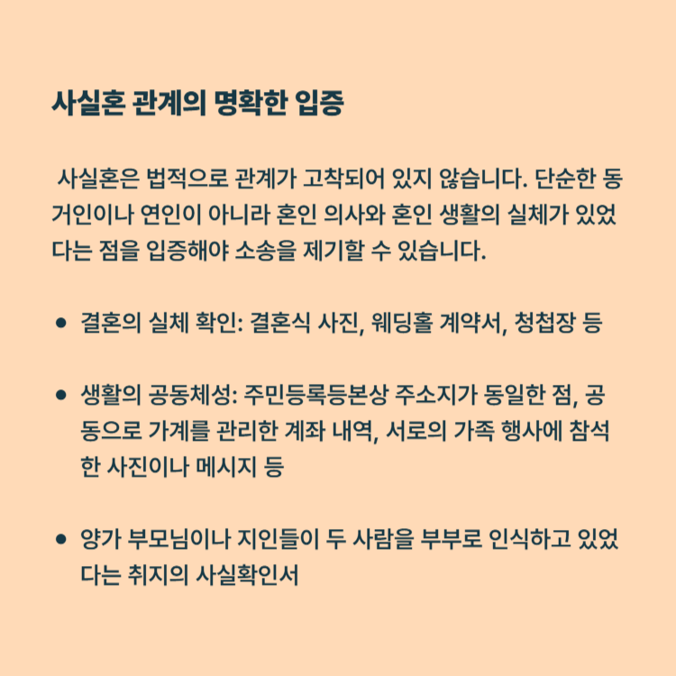첫 단추는 사실혼 관계의 명확한 입증입니다