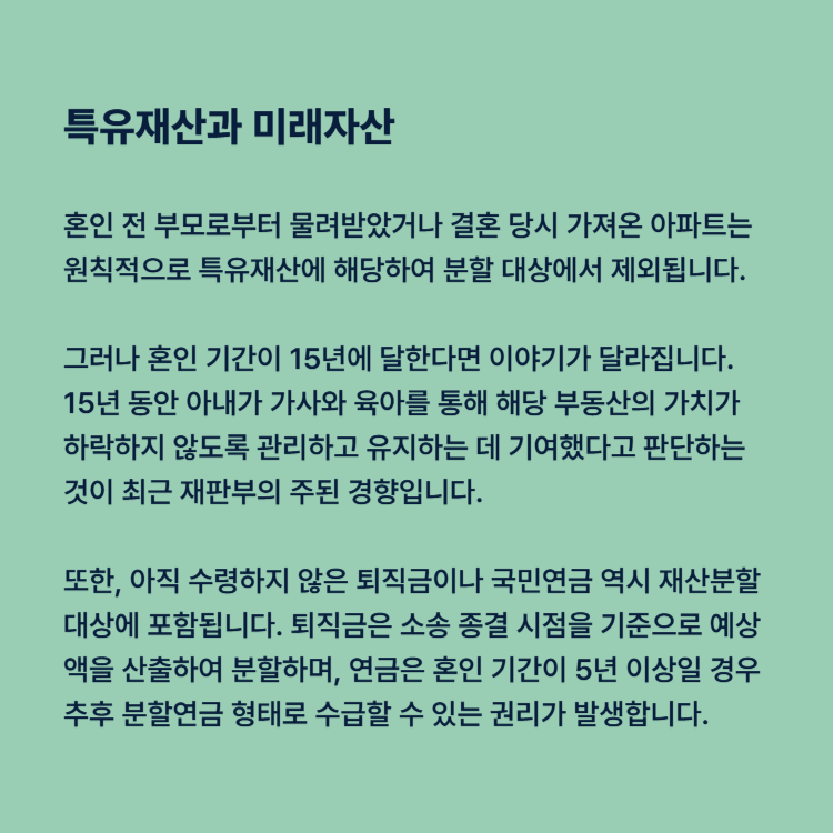 특유재산과 미래 자산의 분할 대상 포함