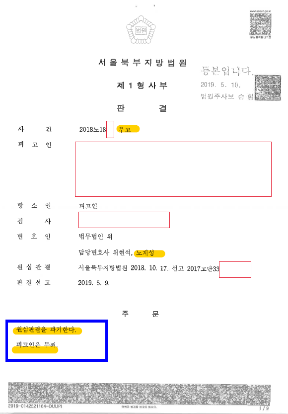 혐의 : 무고죄(1심) → 결과 : ‘무죄’