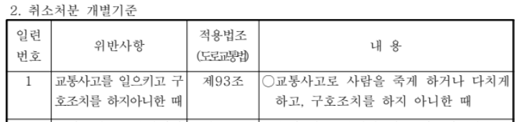 교통사고로 사람을 다치게 한 뒤 구호조치·신고의무를 이행하지 않은 경우 운전면허가 취소된다.