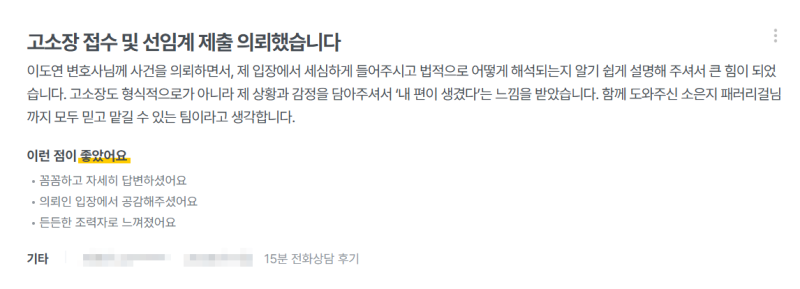 그래서 저희도 의뢰인과 긴밀히 대화를 나눈 뒤 그 아픔이 서면에 전부 반영될 수 있도록 피드백을 주고받으며 서면을 작성하고 있습니다.