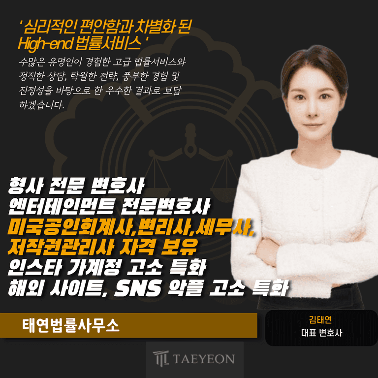 유명연예인, 유튜버, 인플루언서들이 가장 먼저 찾는 로펌, 명예훼손죄변호사를 찾고 계신다면 고민하지 말고 태연법률사무소로 연락 주시기 바랍니다.