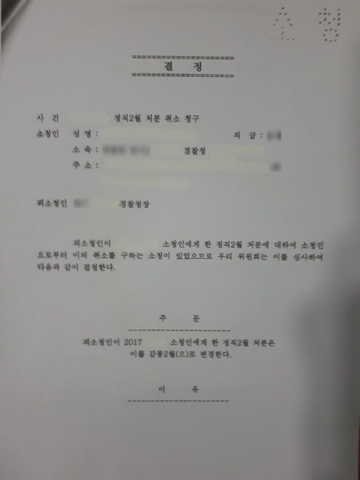 오늘은 소청심사 성공사례 를 알려드리겠습니다.