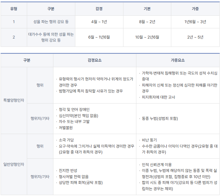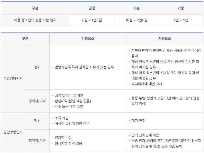 양형의 경우 성판매자가 성년·미성년 여부 등에 따라 기준을 나누고 있습니다.