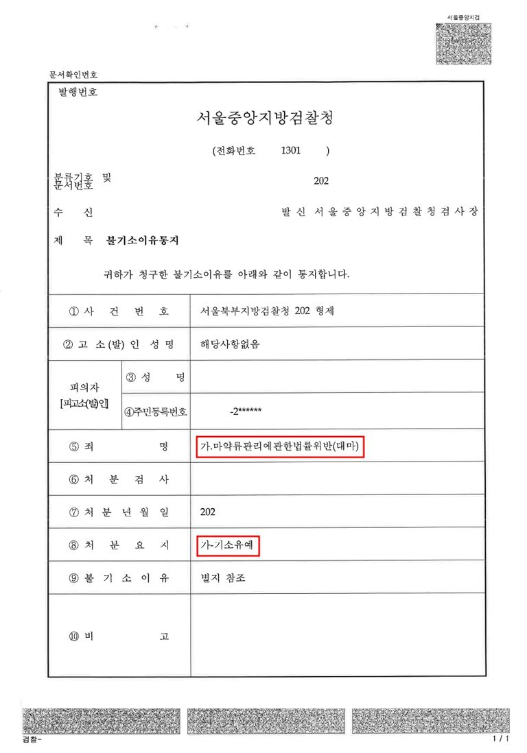수사기관은 의뢰인의 유리한 사정을 참작하여, '드라퍼'와 관련된 혐의는 수사에서 제외되었고, 투약과 관련된 혐의에 대해서만 기소유예 처분을 내렸습니다.
