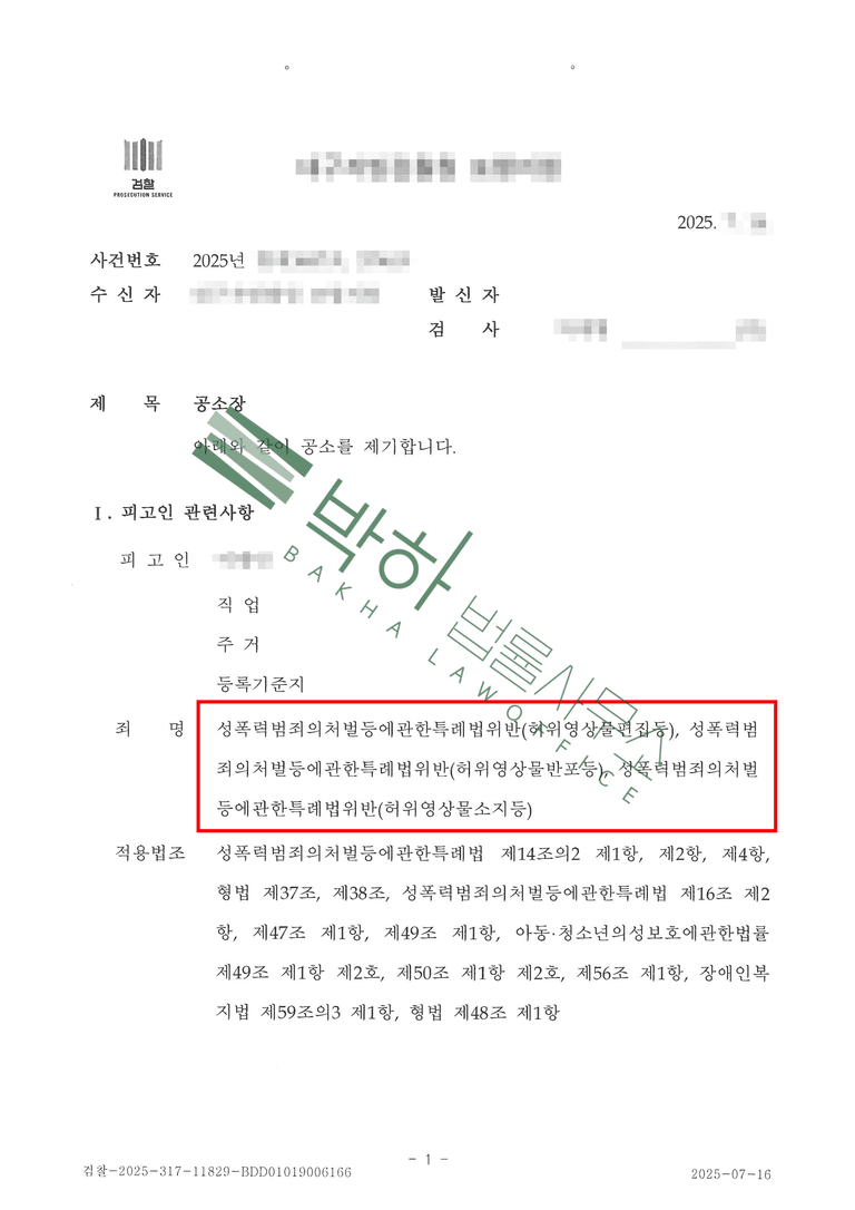 피해자는 어느 날 모르는 번호로부터 자신의 얼굴과 다른 여성의 나체가 합성된 사진과 신상정보, 그리고 협박 메세지를 받았습니다. 피해자는 지인들만 볼 수 있는 계정에 올렸던 사진이 해당 합성 사진에 이용된 사실을 확인하여 가해자를 직장 동료로 특정한 상황이었습니다.