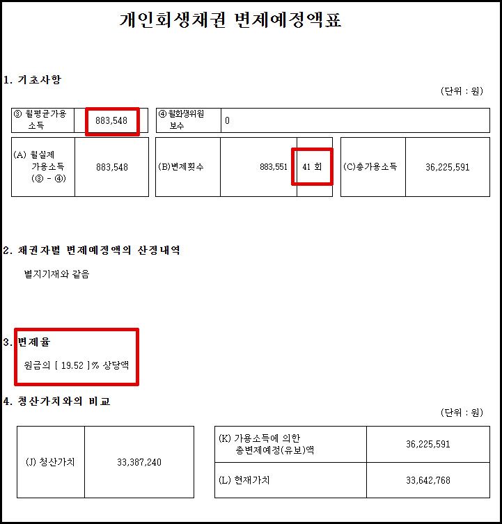 월 약 88만 원을 41개월간 변제하고, 원금의 약 19.52%만 상환하는 조건이었습니다.