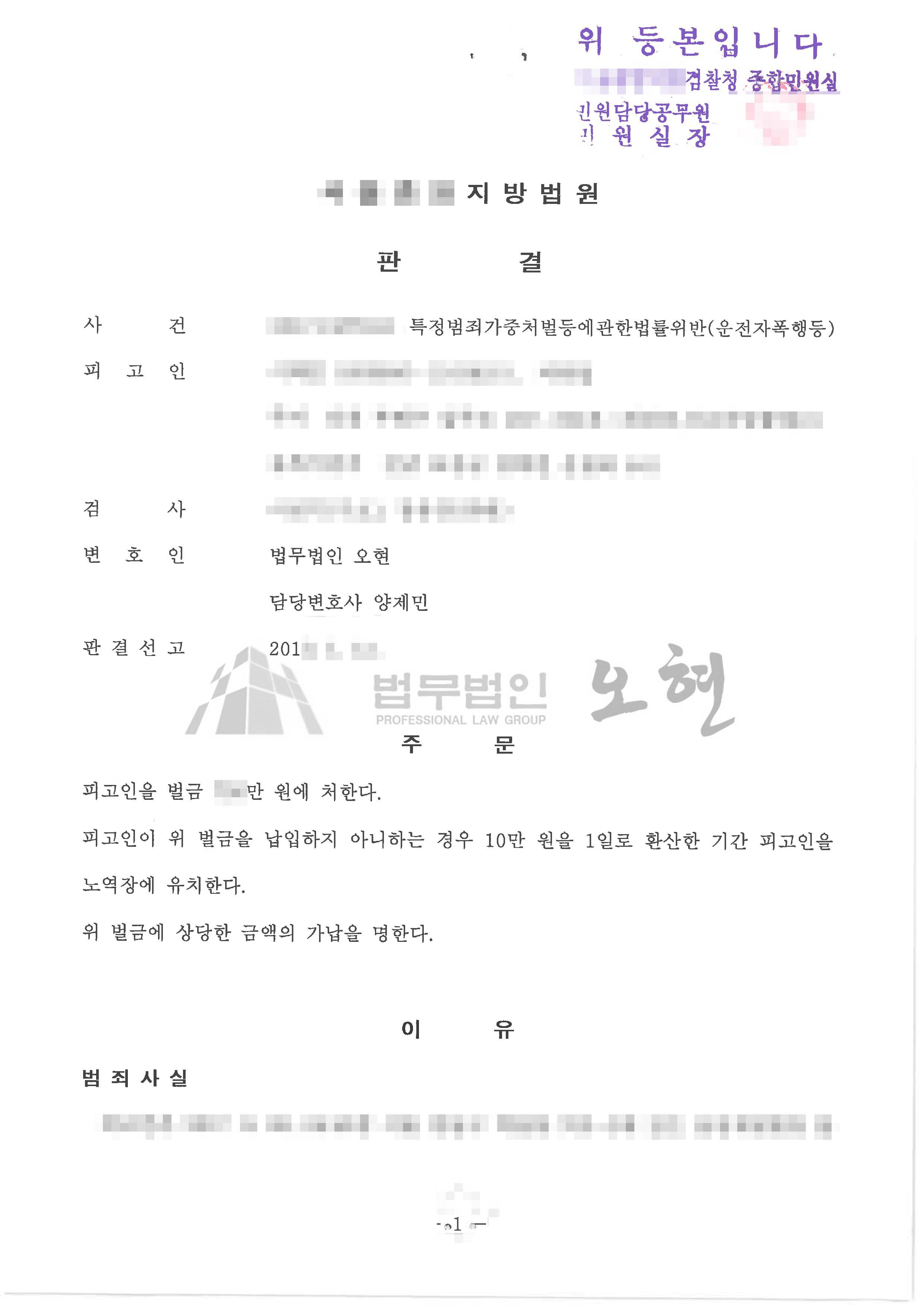 사건의 결과 – 벌금형 선고